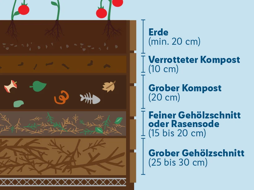 Aufbau eines Hochbeets mit fünf Schichten