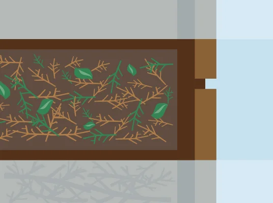 Die zweite Schicht grenzt die Holzkernschicht vom anfänglichen Nährboden ab. Dafür eignen sich gehäckselte Äste, klein geschnittene Heckenabfälle oder geschredderte Staudenreste. Alternativ kannst du auch eine umgedrehte Rasensode einsetzen. Diese Zwischenschicht sorgt dafür, dass die oberen Schichten nicht nach unten durchrutschen.