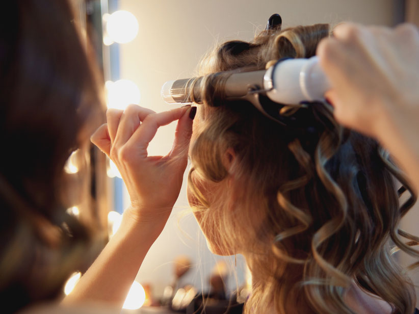 Wenn einfaches Föhnen nicht ausreicht, um den Haaren die gewünschte Struktur zu verpassen, kommen spezielle Geräte zum Haarstyling zum Einsatz. Sie arbeiten mit großer Hitze und verändern damit kurzfristig die Form der Haare. Glätteisen, Lockenstab und Co sollten dabei nur auf bereits getrocknetem Haar angewendet werden – durch Reste an Feuchtigkeit können große Haarschäden entstehen. Hitzeschutzsprays und ähnliche Haarpflegeprodukte minimieren die Gefahr von Haarbruch zusätzlich.