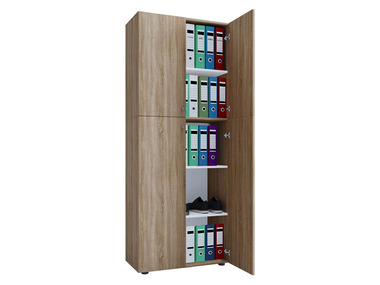 Wenn es um Büroschränke geht, ist der erste Gedanke der an einen klassischen Aktenschrank. Aktenschränke sind in ihren Maßen genau darauf abgestimmt, den standardisierten Aktenordnern Platz zu bieten. Breite Ordner besitzen eine Rückenbreite von 8 cm, die schmalen Versionen messen normalerweise 5 cm, die Höhe beläuft sich bei beiden Varianten auf knapp 32 cm. Wer seine Ordner also nicht so sehr befüllt, dass sie mehr Platz einnehmen als vorgesehen, kann gut kalkulieren, wie breit der Aktenschrank sein muss, damit alle Unterlagen untergebracht werden können. Werden zusätzlich noch Schubladen zum Verstauen von Büromaterialien und Co. benötigt, bietet sich ein Mehrzweckschrank an, der Regalfächer und Schubladen kombiniert. Durch die Türen des Schranks ist dessen Inhalt zudem vor neugierigen Blicken geschützt.