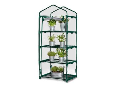 Diese Art Gewächshaus lässt sich platzsparend auf Balkonen, im Vorgarten und sehr kleinen Gärten aufbauen. Dabei können Pflanzen in Stehhöhe kultiviert werden. Besonders gut eignet es sich auch, um Kübelpflanzen überwintern zu lassen.