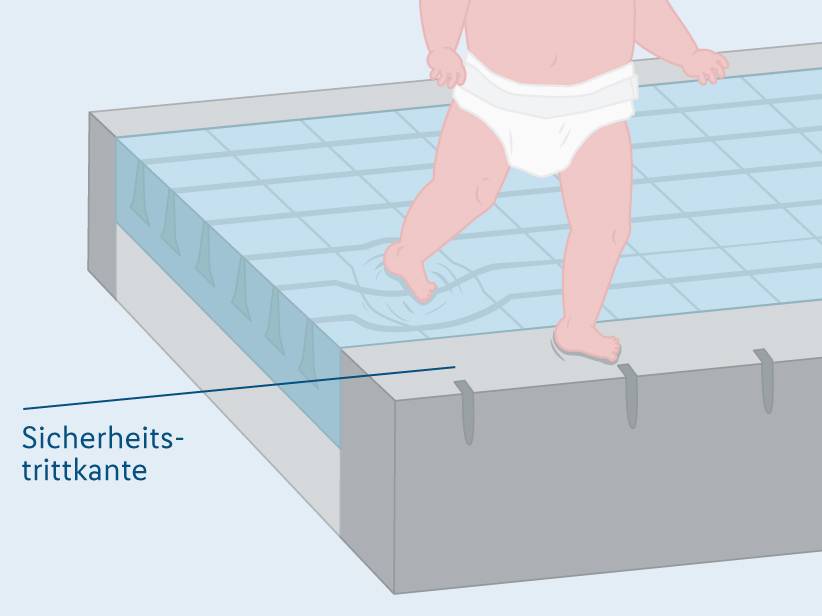 Auch wenn bei Kindermatratzen auf verschiedene Zonen verzichtet wird, ist bei guten Modellen doch eine Art der Aufteilung zu erkennen: Eine stabile Sicherheitskante, die die Matratze umrundet, sorgt dafür, dass die Matratze nicht einsackt, wenn das Kind erste Stehversuche am Bettgitter unternimmt oder selbstständig darauf steht. So lassen sich Unfälle vermeiden und die kleinen Kinderfüße können nicht versehentlich zwischen Matratze und Bettrahmen eingeklemmt werden.