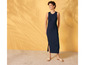 Damen Geripptes Kleid in Midilänge
