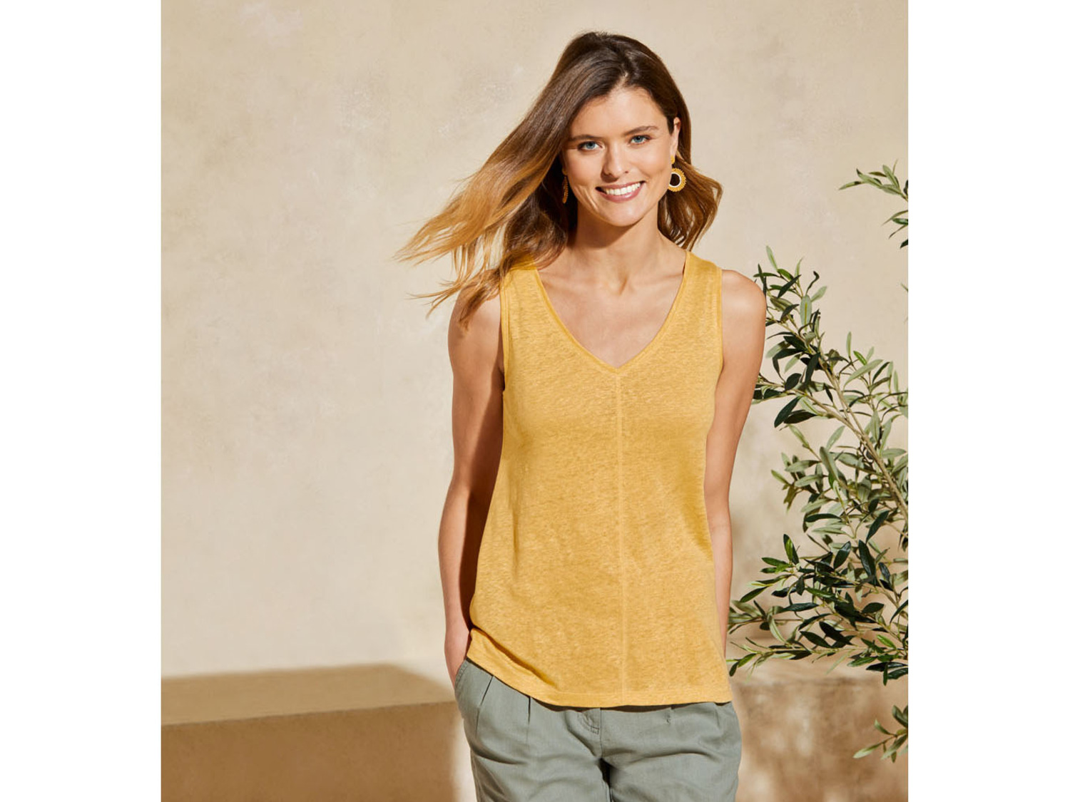 Damen Leinentop, leger geschnitten