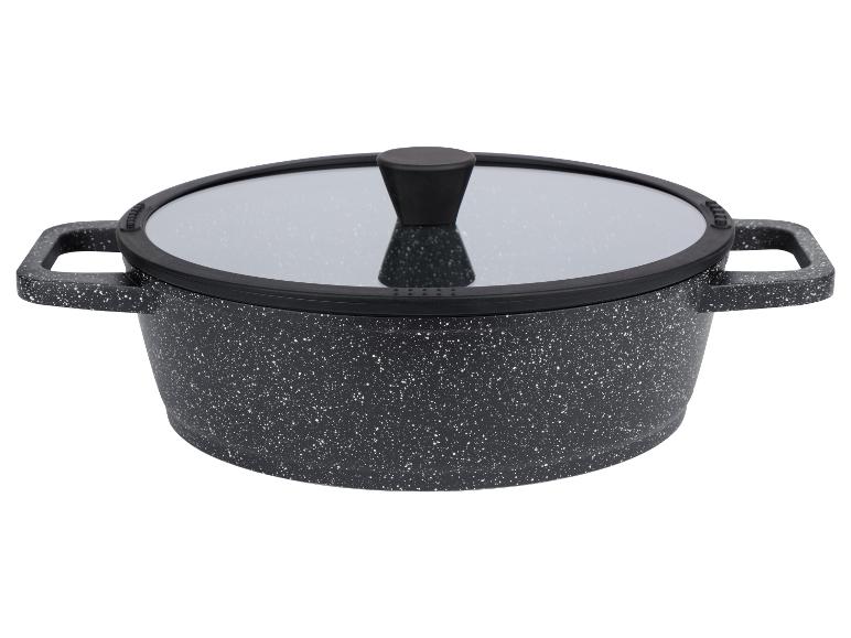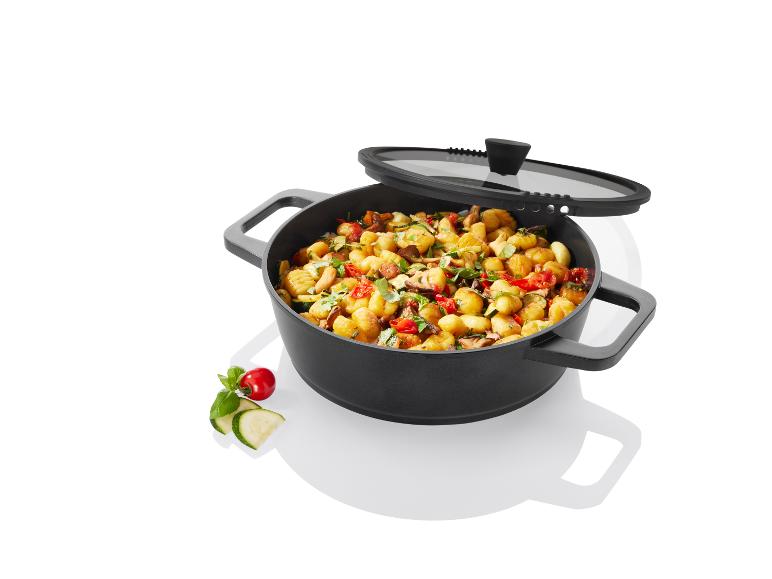 Aluguss-Servierpfanne, inkl. Glasdeckel mit zwei Ausgusssieben