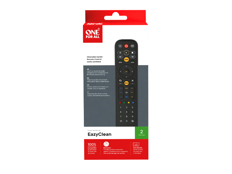 ONE FOR ALL2in1 Universal-Fernbedienung »EazyClean URC9291«, Backlight Online ausverkauft! Ähnliche tolle Produkte findest du hier.UVP: 29.99-30%20.99*Benachrichtige michonline ausverkauftArtikelnummer: 100401301ONE FOR ALL2in1 Universal-Fernbedienung »EazyClean URC9291«, Backlight Online ausverkauft! Ähnliche tolle Produkte findest du hier.UVP: 29.99-30%20.99*Benachrichtige michonline ausverkauftArtikelnummer: 100401301BeschreibungBeschreibungDownloadsSpracheDateinameINTean=8716184079504_ofa-URC9291-Univ.Fernbedienung-EasyClean_IMA_DE-BE-NL-CZ-ES-FR-PL-SK_LDT (1).pdfDownloads