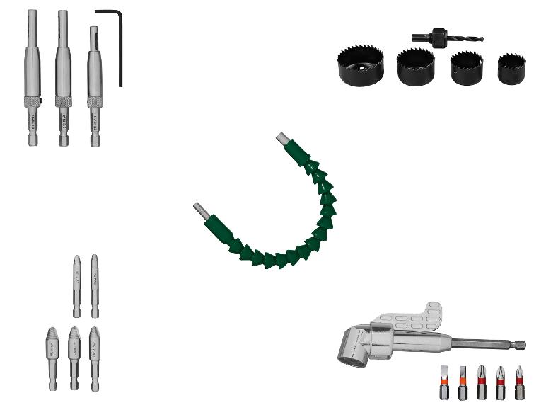 Scharnierlochbohrer / Lochsägen-Set / HSS-Schraubenausdreher / Winkel-Bithalter mit Bit-Set / Flexible Welle