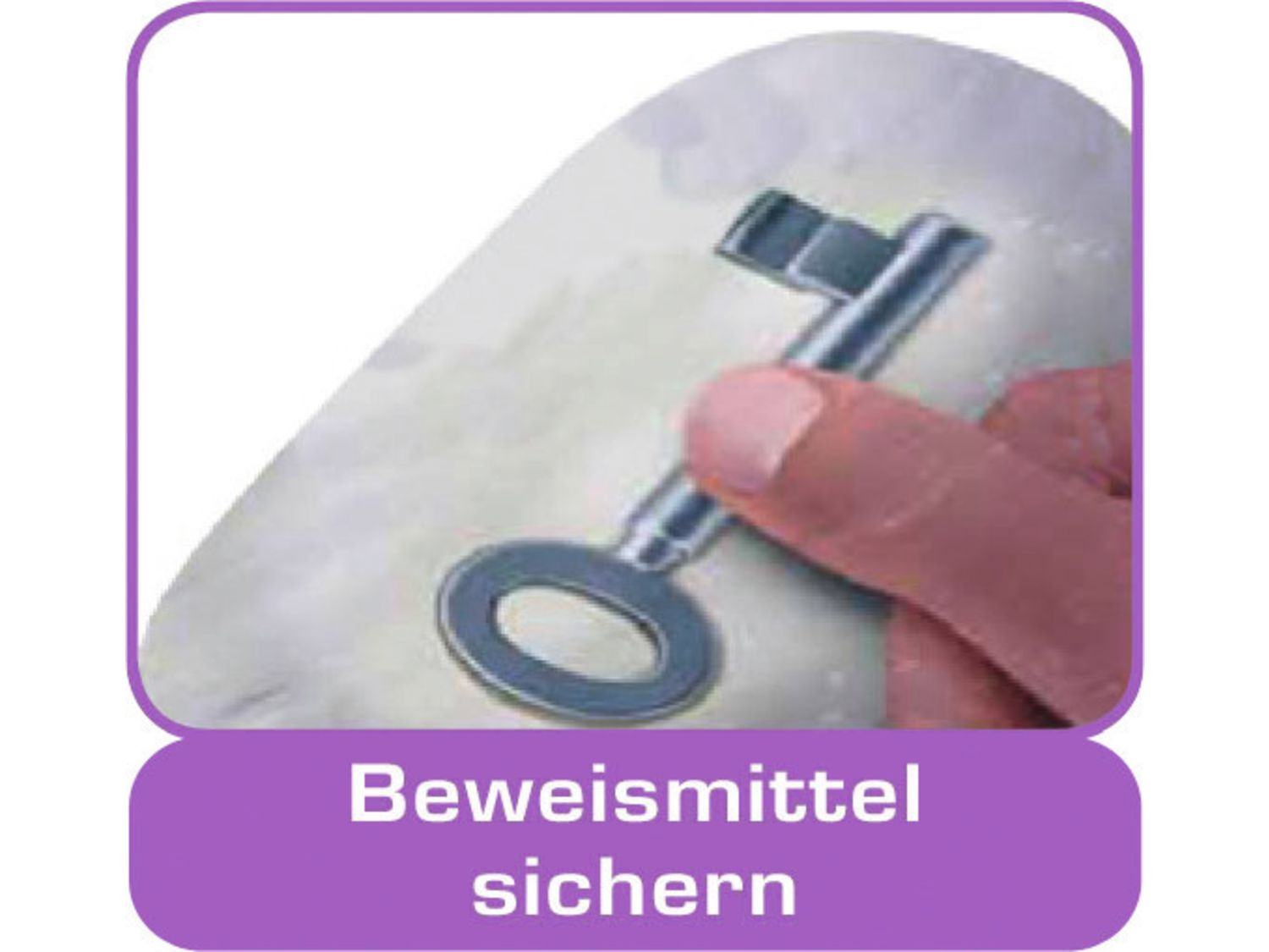 Lupe, Pinzette, 5 Tatorttütchen, Maßband, Gips, Knete, Pipette, braune Kunststoffflasche, Schutzbrille, Röhrchen mit Deckel, Trichter, Filterpapier, Fingerabdruckkärtchen, 10 Tatortkärtchen, Suchbild, Dienstmarke, Insektenkarte, Röhrchenhalterung, ausführliches Anleitungsheft