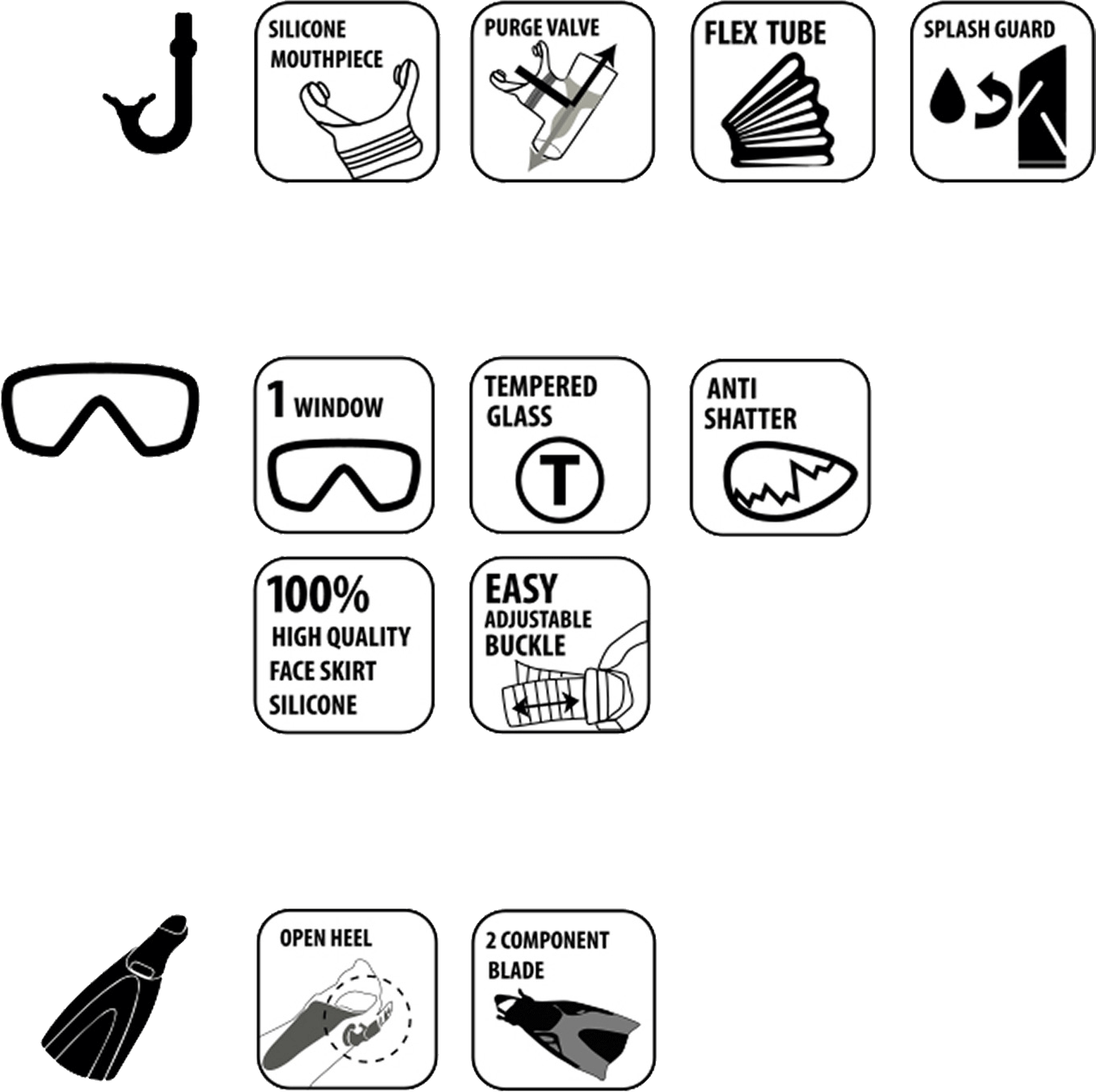 Schildkröt-FunsportsSchildkröt Schnorchelset »CAYMAN«, 3-teilig, mit Silikon-Maske, Flossen und Netztasche